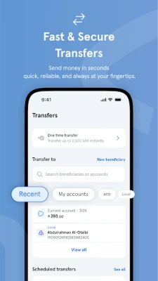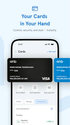 நிதித் தேவைகள் இனி காத்திருக்காது. anb Mobile App மூலம் தனிநபர் அல்லது வாகனக் கடன்களுக்கு நேரடியாக விண்ணப்பிக்கலாம், அல்லது புதிய கிரெடிட் கார்டு பெறுவதற்கான கோரிக்கைகளை எளிதாக சமர்ப்பிக்கலாம். அவசரத் தேவைகளுக்காக, Emergency Cash சேவை மூலம் கார்டு இல்லாத ஏடிஎம் பணப் பரிமாற்ற வசதியைப் பயன்படுத்தி எங்கிருந்தும் பணம் எடுக்கலாம். மேலும், உங்கள் டிஜிட்டல் Mada கார்டை உடனடியாகப் பெற்று, நொடிகளில் உங்கள் செலவினங்களுக்குத் தயாராகுங்கள். உள்ளூர் பரிமாற்றங்கள் முதல் டெலிமணி சேவை வழியாக சர்வதேச இடமாற்றங்கள் வரை, அனைத்து வகையான பணப் பரிமாற்றங்களையும் சிரமமின்றி மேற்கொள்ளலாம்.