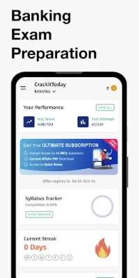 வங்கித் தேர்வுகளில் பிரகாசமான எதிர்காலத்தை அமைத்துக் கொள்ள விரும்பும் ஒவ்வொருவருக்கும், "Crackittoday வங்கித் தேர்வு செயலி" ஒரு வரப்பிரசாதம். இது வெறும் ஒரு செயலியல்ல, உங்கள் வெற்றிப் பயணத்தின் முழுமையான துணை! பல்தேர்வு வினாக்கள் (MCQs), முந்தைய ஆண்டு வினாத்தாள்கள், உயர்தர PDF குறிப்புகள் மற்றும் தினசரி நடப்பு நிகழ்வுகள் என அனைத்தையும் ஒரே இடத்தில் பெறலாம். ஃபிளாஷ்கார்டுகள், அகில இந்திய தரவரிசை, மதிப்பெண் பகுப்பாய்வு மற்றும் பாடத்திட்ட கண்காணிப்பு போன்ற தனித்துவமான அம்சங்களுடன், வரவிருக்கும் வங்கித் தேர்வுகளை எதிர்கொள்ள இது உங்களை முழுமையாக தயார்படுத்துகிறது.