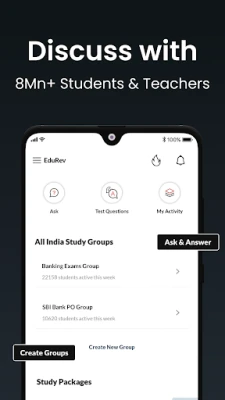 தினசரி தேசிய மற்றும் சர்வதேச நடப்பு நிகழ்வுகளுடன் நீங்கள் எப்போதும் புதுப்பிக்கப்பட்ட தகவல்களைப் பெறுவீர்கள். SBI Clerk மற்றும் SBI PO போன்ற முக்கிய வங்கித் தேர்வுகளின் அறிவிப்புகள், தேர்வு தேதிகள் மற்றும் சமீபத்திய தகவல்களை EduRev உடனேயே தெரிந்து கொள்ளுங்கள். லட்சக்கணக்கான வீடியோக்கள், ஆவணங்கள், 25,000+ சோதனைகள் மற்றும் 800+ படிப்புகள் அடங்கிய மாபெரும் களஞ்சியத்தை இந்த செயலி கொண்டுள்ளது. இந்தியா முழுவதிலுமிருந்து வரும் மாணவர்களுடன் உங்கள் சந்தேகங்களை விவாதிக்கவும், உங்கள் பலம் மற்றும் பலவீனங்களை அடையாளம் காண ஆழமான தேர்வு பகுப்பாய்வைப் பெறவும் இது உதவுகிறது. உங்கள் படிப்பு முறைகளுக்கு ஏற்ப செயலி தன்னைத் தகவமைத்து, சரியான உள்ளடக்கத்தைப் பரிந்துரைப்பதன் மூலம் தனிப்பயனாக்கப்பட்ட கற்றல் அனுபவத்தை வழங்குகிறது. பள்ளித் தேர்வுகள், நுழைவுத் தேர்வுகள் மற்றும் தொழில்முனைவு, நிரலாக்கம் போன்ற திறன்களுக்கான படிப்புகளையும் இந்தியாவின் சிறந்த ஆசிரியர்களிடமிருந்து கற்றுக்கொள்ளலாம்.