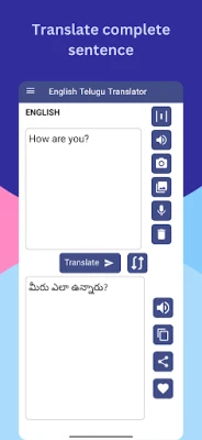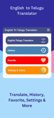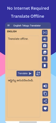ஆங்கிலம் தெலுங்கு மொழிபெயர்ப்பாளர் செயலி மூலம் ஆங்கிலம் மற்றும் தெலுங்கு மொழிகளை எளிதாக மொழிபெயர்க்கவும். இணையம் இல்லாமல் ஆஃப்லைனில் செயல்படும். குரல் உள்ளீடு, வரலாறு, பிடித்தவை மற்றும் படங்களிலிருந்து உரையை பிரித்தெடுக்கும் OCR போன்ற அம்சங்கள் உங்கள் மொழித் திறனை மேம்படுத்த உதவும்.