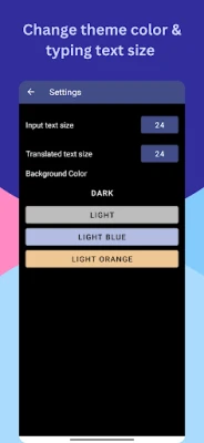 இந்த மொழிபெயர்ப்பாளர் செயலி உங்கள் வசதிக்கேற்ப தனிப்பயனாக்கக்கூடிய அம்சங்களையும் கொண்டுள்ளது. கருப்பு, வெளிர் நீலம், வெளிர் ஆரஞ்சு போன்ற பல்வேறு பின்னணித் தேர்வுகளுடன், நீங்கள் விரும்பும் தோற்றத்தை அமைக்கலாம். மேலும், தட்டச்சு செய்த மற்றும் மொழிபெயர்க்கப்பட்ட உரையின் அளவை உங்கள் பார்வைக்கு ஏற்றவாறு மாற்றியமைக்கும் வசதியும் இதில் உள்ளது. எளிய பயன்பாடு, சக்திவாய்ந்த அம்சங்கள் மற்றும் நம்பகமான தனியுரிமை பாதுகாப்புடன், இது உங்களுக்கு இணையற்ற மொழிபெயர்ப்பு அனுபவத்தை வழங்குகிறது. இந்தச் செயலியின் பயனை நீங்கள் உணர்ந்தால், மற்றவர்களுடன் இதை பகிருமாறு கேட்டுக்கொள்கிறோம். உங்கள் ஆதரவை தெரிவிக்க ஒரு மதிப்புரையை எழுதுங்கள்! நன்றி.