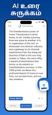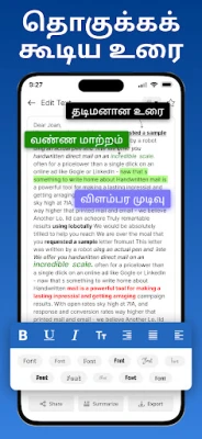 இந்த கருவி வெறும் கையெழுத்து மாற்றியுடன் நிற்கவில்லை. உங்கள் தொலைபேசியின் கேமராவைப் பயன்படுத்தி புதிய குறிப்புகளை உடனடியாக ஸ்கேன் செய்யலாம் அல்லது உங்கள் கேலரியில் உள்ள படங்களை பதிவேற்றி நொடிகளில் உரையாக மாற்றலாம். மேலும், PDF ஆவணங்களில் உள்ள தகவல்களைத் திருத்த விரும்புகிறீர்களா? ஸ்கேன் செய்யப்பட்ட அல்லது டிஜிட்டல் PDF கோப்புகளிலிருந்து உள்ளடக்கத்தை மிகத் துல்லியமாகப் பிரித்தெடுத்து, திருத்தவும், குறிப்பு எடுக்கவும், அல்லது எளிதாகப் பகிரவும் இந்தக் கருவி உதவுகிறது. அதோடு மட்டுமல்லாமல், நீண்ட கட்டுரைகள் அல்லது ஆவணங்களில் உள்ள முக்கிய தகவல்களை விரைவாகப் புரிந்துகொள்ள, எங்கள் செயற்கை நுண்ணறிவு (AI) அடிப்படையிலான உரைச் சுருக்க அம்சம், முக்கிய புள்ளிகளைப் பிரித்தெடுத்து, தெளிவான, சுருக்கமான சுருக்கங்களை வழங்குகிறது.