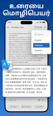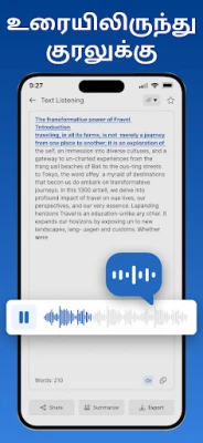 உலகளாவிய பயன்பாட்டிற்கு ஏற்றவாறு, இந்த செயலி ஆங்கிலம், இந்தி மற்றும் பல பிராந்திய மொழிகளில் கையெழுத்து அங்கீகாரத்தை ஆதரிக்கிறது. உங்கள் மாற்றப்பட்ட குறிப்புகளைத் திரும்பப் படிக்க நேரமில்லையா? கவலை வேண்டாம், குரல் வெளியீட்டு அம்சம் உங்கள் கையால் எழுதப்பட்ட குறிப்புகளை உரக்க வாசிக்கிறது, விரைவான மறுபரிசீலனைக்கும் அணுகலுக்கும் இது சிறந்தது. உங்கள் டிஜிட்டல் உரையை நீங்கள் விரும்பும் வழியில் பயன்படுத்தலாம்: உரையை நகலெடுக்கலாம், .txt அல்லது .pdf வடிவத்தில் ஏற்றுமதி செய்யலாம், அல்லது உங்கள் சாதனம் மற்றும் கிளவுட் சேமிப்பகத்தில் நேரடியாகச் சேமிக்கலாம். நோட்பேட், வேர்டு, மின்னஞ்சல், அல்லது சமூக ஊடகங்கள் வழியாக எளிதாகப் பகிரவும் முடியும். உங்களின் அனைத்து ஆவணப்படுத்தும் தேவைகளுக்கும் ஒரே நம்பகமான துணைவன் இந்த கையெழுத்து உரை ஸ்கேனர்.
