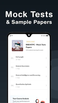 இந்தச் செயலி, ஜூனியர் கிளார்க் கம் டைப்பிஸ்ட் (Junior Clerk Cum Typist), அக்கவுண்ட்ஸ் கிளார்க் கம் டைப்பிஸ்ட் (Accounts Clerk Cum Typist), ஜூனியர் டைம் கீப்பர் (Junior Time Keeper), ரயில் கிளார்க் (Trains Clerk), கமர்ஷியல் கம் டிக்கெட் கிளார்க் (Commercial Cum Ticket Clerk), டிராபிக் அசிஸ்டன்ட் (Traffic Assistant), கூட்ஸ் கார்ட் (Goods Guard), சீனியர் கமர்ஷியல் கம் டிக்கெட் கிளார்க் (Senior Commercial cum Ticket Clerk), ஸ்டேஷன் மாஸ்டர் (Station Master) உள்ளிட்ட பல்வேறு RRB NTPC பதவிகளுக்கான தயாரிப்பிற்கு உதவுகிறது. உண்மையான தேர்வு முறையைப் பின்பற்றும் மாதிரித் தேர்வுகள் மற்றும் ஆய்வு உள்ளடக்கங்களை நீங்கள் தவறாமல் பயிற்சி செய்வதன் மூலம், உங்கள் தயாரிப்பை வெகுவாக மேம்படுத்தலாம். இது ஒரு தனியார் கல்விச் செயலி என்பதை நினைவில் கொள்ளவும்; இது ஒரு அதிகாரப்பூர்வ அரசுச் செயலி அல்ல. அதிகாரப்பூர்வத் தகவல்களுக்கு, https://edurev.in/officialexamsitesdirectory.html தளத்தைப் பார்வையிடலாம்.