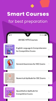 தேர்வு வேகத்தையும் துல்லியத்தையும் மேம்படுத்த, "SSC MTS Exam Preparation App" கணித தந்திரங்கள், தர்க்கரீதியான மற்றும் பகுப்பாய்வு திறன்களுக்கான நுட்பங்களை வழங்குகிறது. சிறந்த தேர்வு செயல்திறனுக்கான நேர மேலாண்மை உத்திகளையும் இங்கு காணலாம். உண்மையான தேர்வு வினாக்களை ஒத்த தினசரி பயிற்சி வினாடி வினாக்கள் உங்கள் திறனை மெருகூட்டும். SSC MTS தேர்வுக்கான அனுமதி அட்டை, தேர்வு முடிவுகள் மற்றும் அதிகாரப்பூர்வ அறிவிப்புகள் குறித்த சமீபத்திய தகவல்களையும் உடனுக்குடன் இந்த செயலி மூலம் அறிந்துகொள்ளலாம். பொது நுண்ணறிவு, அளவுத் திறன், ஆங்கில மொழி, பொது அறிவு என ஒவ்வொரு பாடத்திற்கும் தனித்தனியாக கவனம் செலுத்தி, 2025 ஆம் ஆண்டு SSC MTS தேர்வை வெல்ல "SSC MTS Exam Preparation App" ஒரு முழுமையான களமாக அமைகிறது.