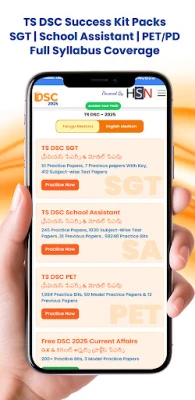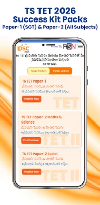 தெலுங்கானா TET வெற்றிக்கான சிறப்புத் தொகுப்புகளும் இச்செயலியில் கிடைக்கின்றன. TET தாள்-1 (SGT), தாள்-2 (கணிதம் மற்றும் அறிவியல்) மற்றும் தாள்-2 (சமூக அறிவியல்) ஆகியவற்றிற்கான முழு நீள மாதிரித் தாள்கள், முந்தைய ஆண்டுத் தாள்கள் மற்றும் பாடவாரியான பயிற்சித் தேர்வுகள் என அனைத்தையும் TG DSC & TET 2026 Preparation App வழங்குகிறது. இது ஒரு அரசு சாரா, சுயாதீனமான கல்விப் பயன்முறையாகும், மாதிரித் தாள்கள் மற்றும் பயிற்சிக் குறிப்புகள் மூலம் தேர்வர்கள் சிறந்த முறையில் பயிற்சி பெறுவதற்கு மட்டுமே வடிவமைக்கப்பட்டுள்ளது. உங்கள் தேர்வுகளுக்கு ஒரு முழுமையான, நம்பகமான துணை தேடுபவர்களுக்கு இது சிறந்த வழியாகும்.