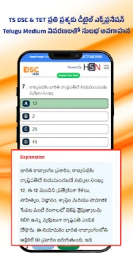 TG DSC & TET 2026 Preparation App, உங்களது புரிந்துணர்வை மேம்படுத்தும் வகையில், ஒவ்வொரு கேள்விக்கும் விரிவான விளக்கங்களை வழங்குகிறது. தெலுங்கு மற்றும் ஆங்கிலம் என இரு மொழிகளிலும் கிடைக்கும் இந்த வசதி, தேர்வர்கள் பாடப்பகுதிகளை ஆழமாகப் புரிந்துகொள்ள உதவுகிறது. தெலுங்கானா DSC-யின் மாதிரித் திட்டத்தின்படி வடிவமைக்கப்பட்ட பெருந் தேர்வுகள், பாடவாரியான பயிற்சித் தொகுப்புகள் (தெலுங்கு, ஆங்கிலம், கணிதம், இயற்பியல், உயிரியல், சமூக அறிவியல்) மற்றும் முந்தைய ஆண்டு வினாத்தாள்கள் அவற்றின் விடைகளுடன் இங்கு இடம்பெற்றுள்ளன. இந்த உள்ளடக்கங்கள் அனைத்தும் சமீபத்திய தேர்வு முறைகளுக்கு இணங்க கவனமாகத் தொகுக்கப்பட்டுள்ளன.